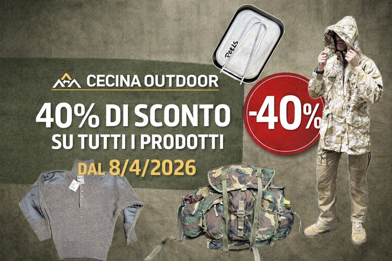 Da oggi ,8 aprile 2026, su CecinaOutdoor tutto l'equipaggiamento è scontato al 40% con il codice "SALE40" !!